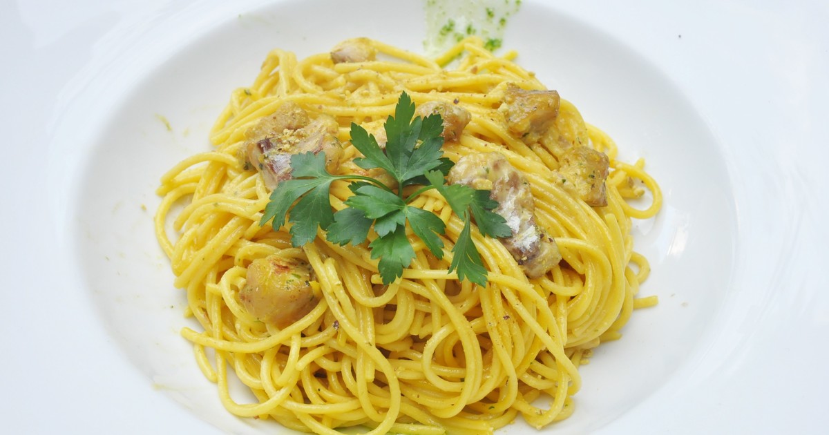 Pasta con salsa carbonara di mare